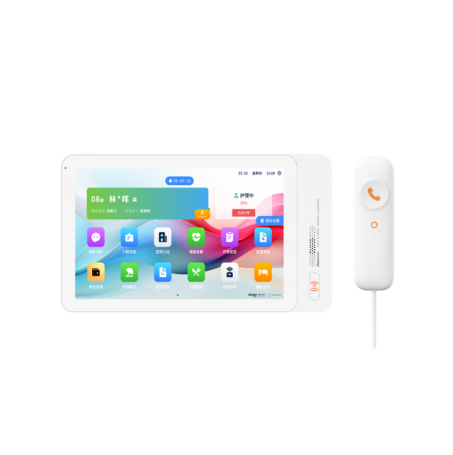 安裝在病床頭的交互設(shè)備機(jī),代替?zhèn)鹘y(tǒng)紙質(zhì)卡。產(chǎn)品支持呼叫對(duì)講、為住院患者提供病例查詢、狀態(tài)自動(dòng)提醒等護(hù)理需求等。